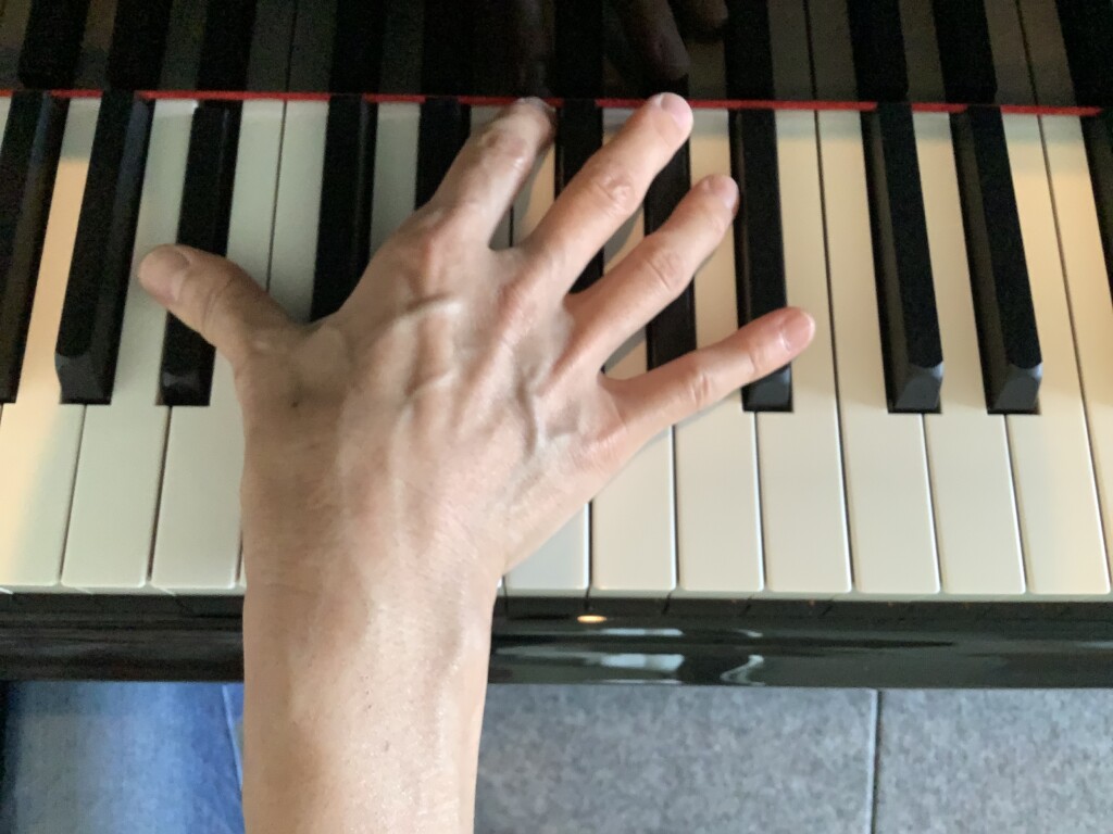 まむし指とも呼ばれる内転筋で引き寄せる使い方や1指を持ち上げる、指先を曲げるなどは、肩に力が入ったり、和音や速いパッセージの指くぐりの際の弾きにくさの原因につながっていきます。速く弾けたとしてもとても疲れたり、腕に痛みが出てしまったり、フォルテの和音も音が飛ばない、響きが美しくないなど、思い通りにならないのは、頑張っていらっしゃる生徒さん本人がとても辛くなりますよね。。。