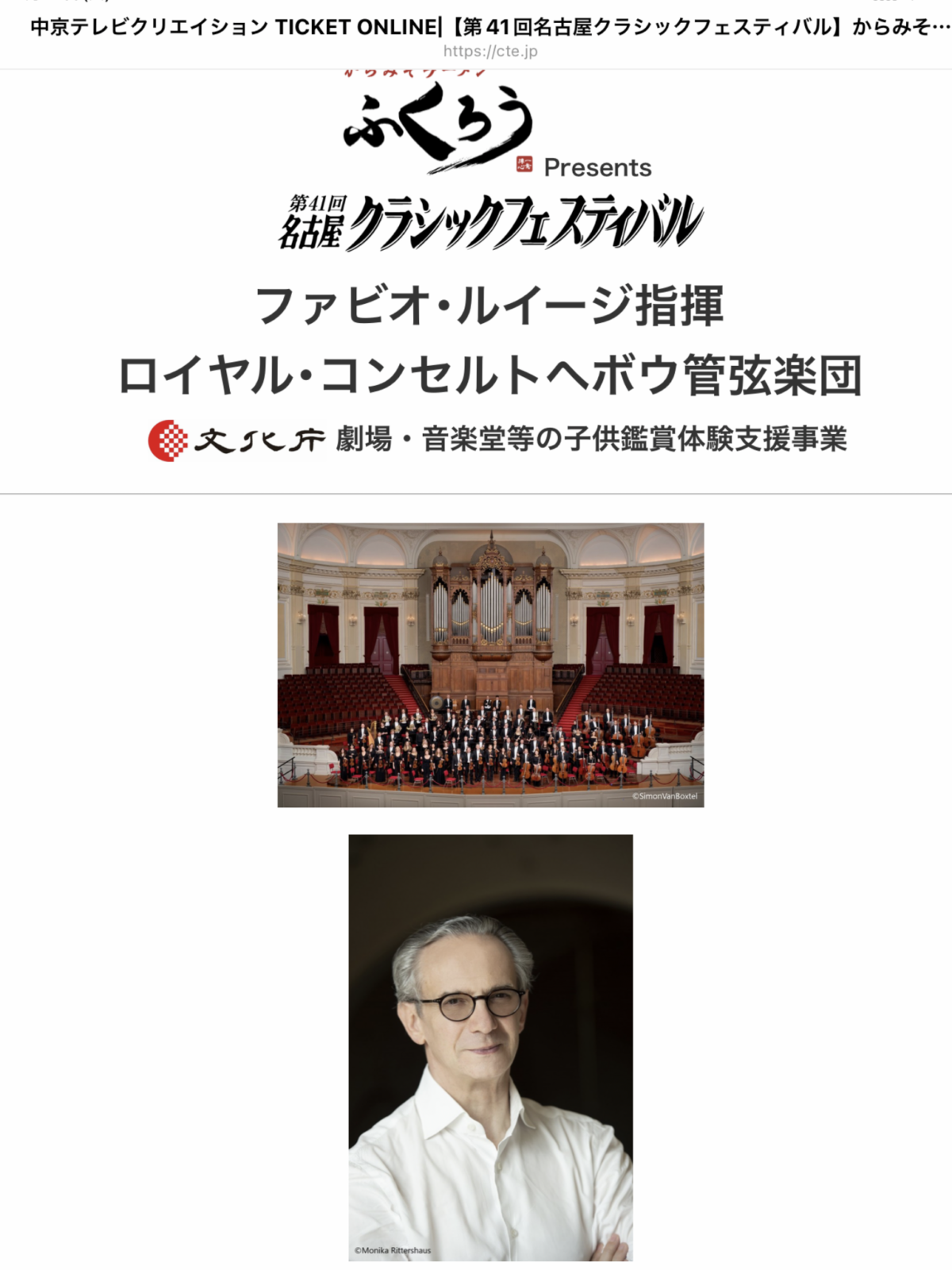 正規のチケットS席で41,000円の演奏会が、中京TV主催の子供鑑賞体験支援事業のため18歳以下の方は無料🙀です。